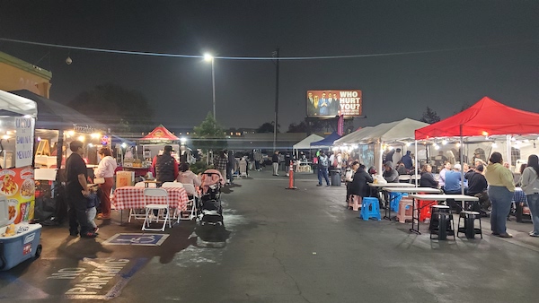 The 626 Night Market not only pioneered the formal night market concept in Southern California, but it proved you can name your night market after your area code. Reseda-based business Laser Jacks Co. took note and has organized the 818 Night Market representin’ the SFV since July 2021. Taking place every Saturday evening at the parking lot of Mission Hills Christian Church/Devonshire Montessori School in Mission Hills on Devonshire St. and Lemona Ave., the 818 Night Market’s 26 vendors is a smaller, more neighborhood-oriented night market, with some 26 vendors (14 of which are food, including trucks). American, Mexican, Salvadoran and Japanese dishes are represented here, as well as vendors selling Filipino and Mexican sweets and pastries. There’s also a train ride for the kids and live music entertainment on certain weeks.